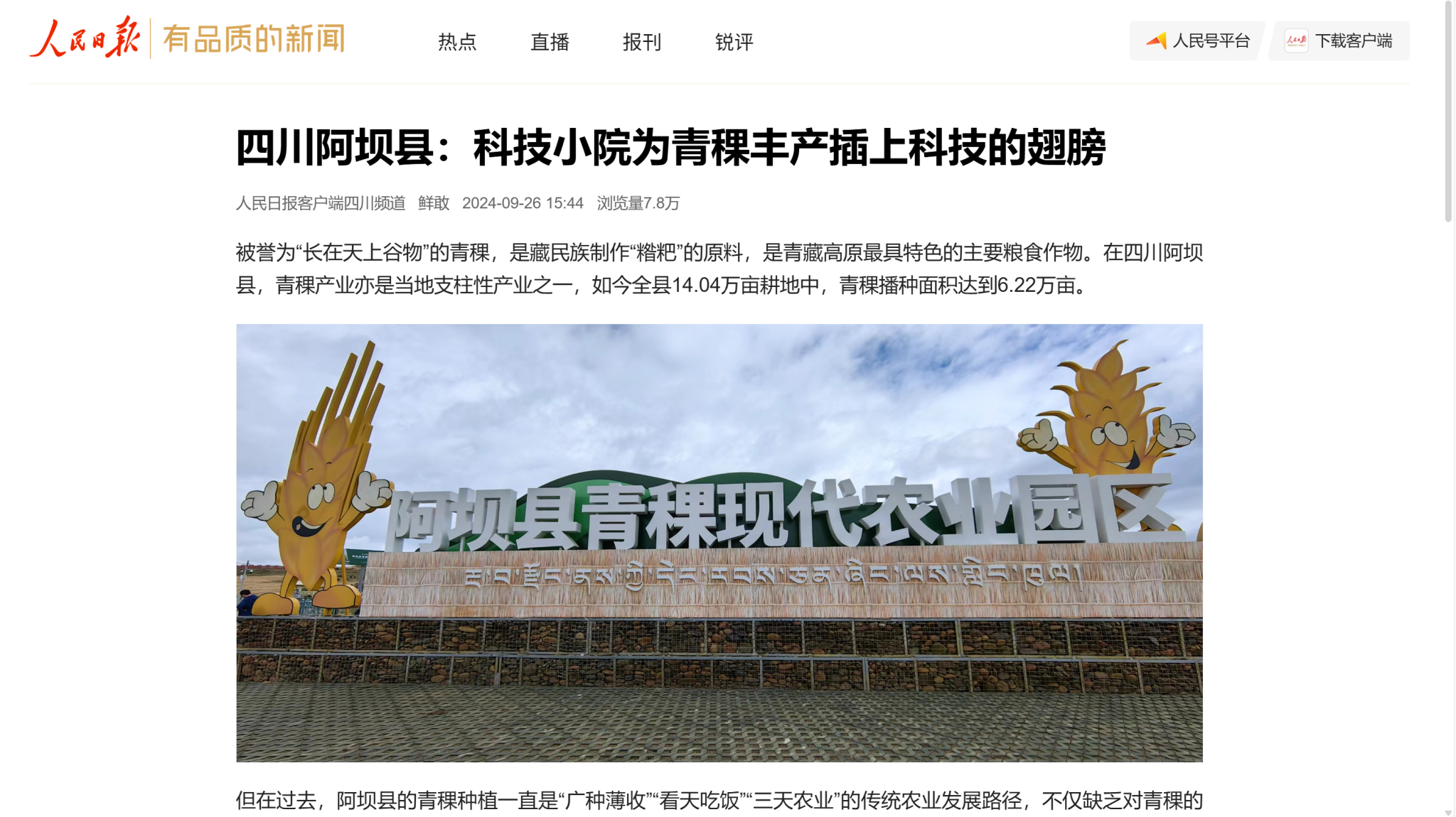 走进青稞科技小院,可以通过大屏实时监测到青稞园区内土壤温度、湿度、pH值,物联网传感器实时收集青稞成长所需数据,为不同成长阶段的青稞打造最适宜的环境。荧光显微镜、荧光定量PCR、低温冷冻离心机……20多种、价值400余万元的科研实验设备落户小院,还建立智能数字监测站、传感器、物联网设备等现代化科技装备。2024年7月,四川阿坝青稞科技小院再次入选“国家队”,成为全国第一个以青稞品种筛选及种植研发为主的科技小院。