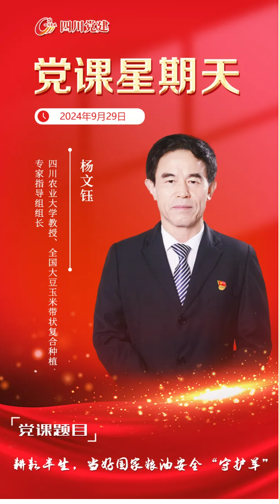 大家好,我是best365官方网站登录入口教授杨文钰。今天,我分享的党课题目是《耕耘半生,当好国家粮油安全“守护羊”》,与大家交流坚持守正创新、践行初心使命的感悟。