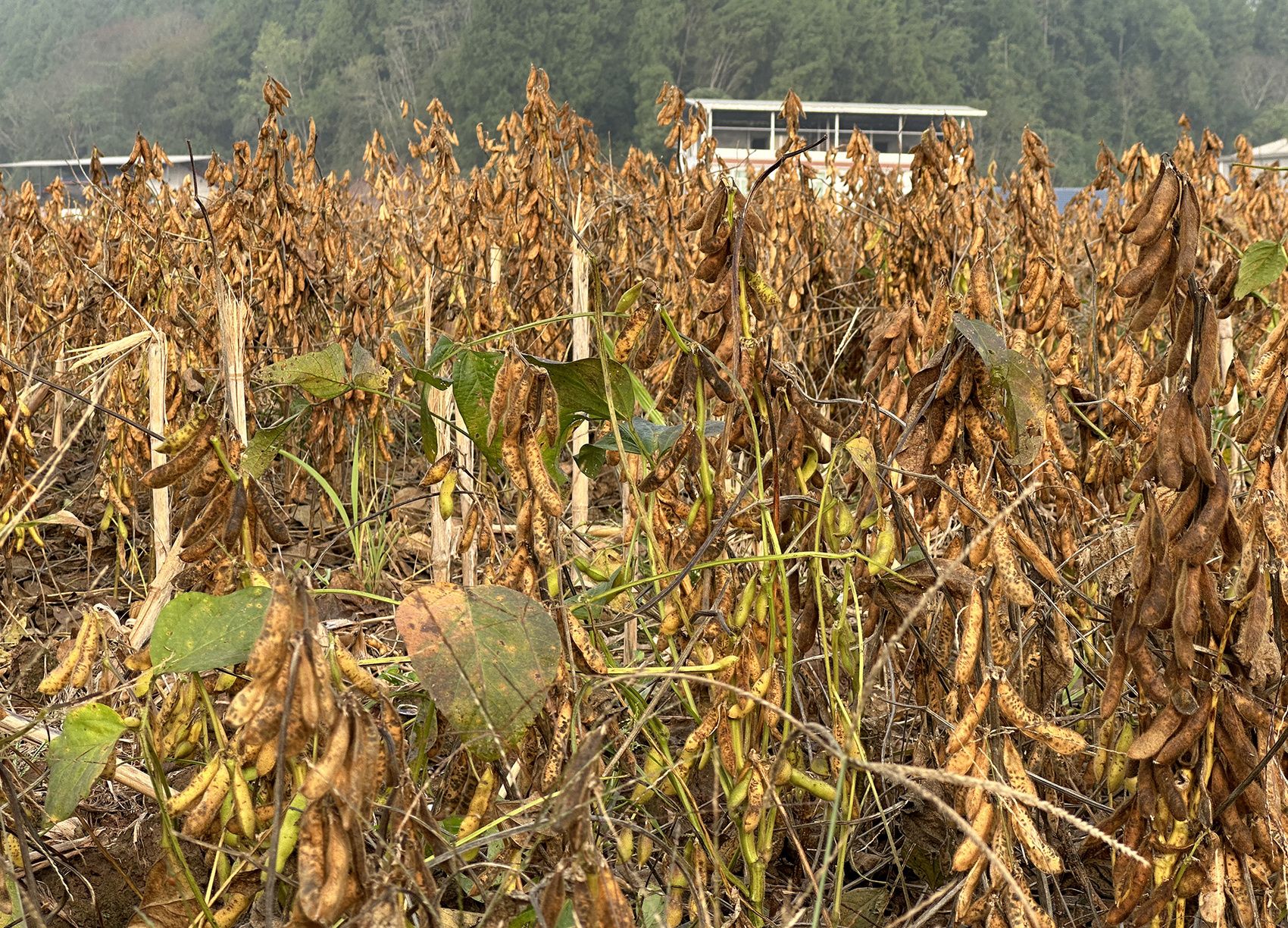 好在9月中下旬,川内各地气温降至25-30摄氏度,利于大豆二次开花,大豆实际花期就这样推迟了半个月。之所以目前仍有部分大豆处于青豆状态,是因为新长出来的豆荚集中在植株顶部,比前一批次晚半个月。这弥补了一部分前期损失的产量。