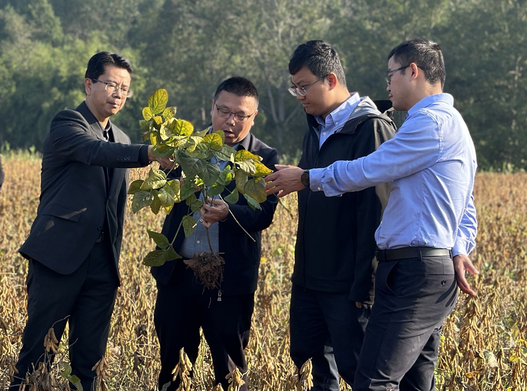 测产专家查看大豆成熟情况。