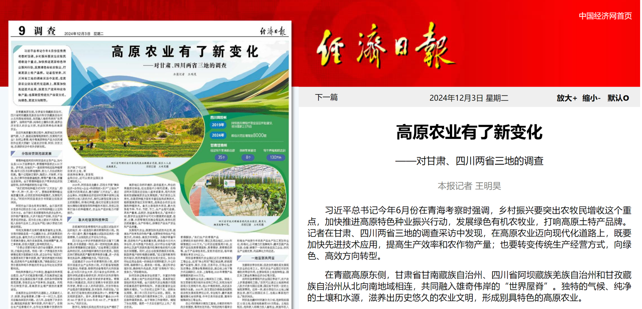 在迈向高质量发展过程中,高原地区如何突破气候、人才、基础设施等瓶颈制约,发展现代农业?如何让青稞、牦牛等高原特色产品为农民增收作出更大贡献?记者走访甘南、阿坝、甘孜三地,在调研采访中有许多新发现。
