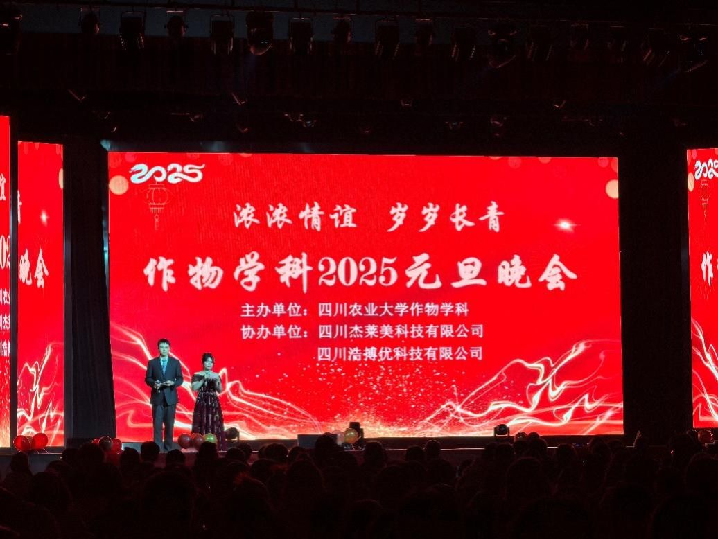 近日,由“一院三所一重”五个单位联合主办,四川杰莱美科技有限公司、成都浩搏优科技有限公司协办的“浓浓情谊·岁岁长青”作物学科2025元旦晚会在成都校区麦立方隆重举行。1000余名师生齐聚一堂,共同庆祝新年的到来,展望学科发展的美好未来。