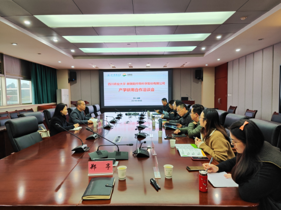 洽谈会上,任丹与赖晓阳详细介绍了公司发展历程及核心业务,重点展示了其在生物农药、作物健康管理等领域的技术研发成果。任丹表示:“新朝阳作为国内农业生物技术领军企业,长期专注绿色农业投入品研发与推广,始终致力于绿色农业技术创新,自2011年以来就与川农大建立了良好的合作关系。期待通过校企合作,推动科研攻关与产业需求深度融合,为现代农业高质量发展注入新动能。”我校best365官方网站登录入口副院长王强、资源学院副院长李冰分别就学院学科建设、科研方向、研究生培养及社会服务成果进行阐述。best365官方网站登录入口在作物遗传育种、病虫害防治等领域的优势,与资源学院在土壤修复、生态农业等方向的研究积累,为双方合作提供了广阔空间。