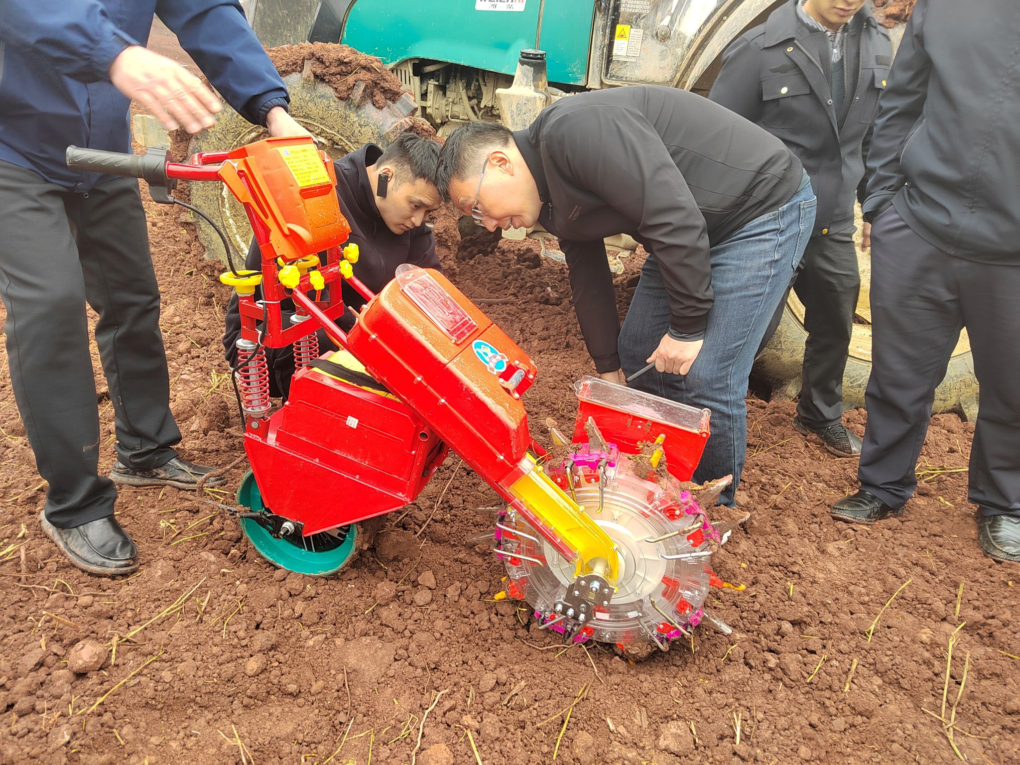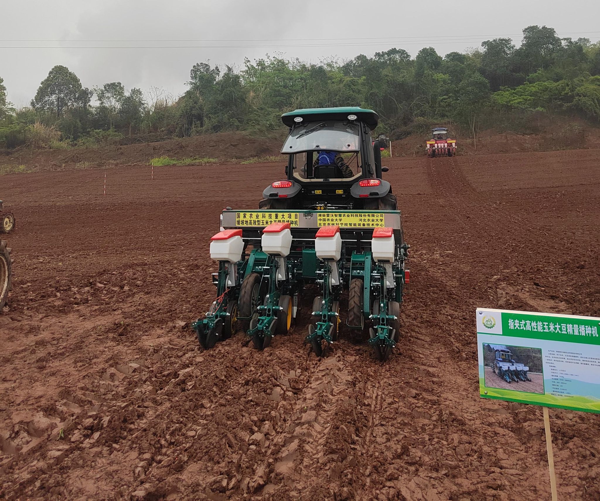播种是影响产量的关键。今年3月28日,农业农村部召开全国粮油作物大面积单产提升工作推进视频会,强调大力推广精量播种。中国农业大学工学院教授杨丽长期从事玉米精量播种技术与机具研究。“丘陵山区播种机具要重点关注减黏、防漏、控深、轻简几个要点。”杨丽说。近年来,在国家农业科技重大项目的支持下,团队围绕丘陵山区机播难题,开展缓坡地、坡地玉米、大豆、花生精量播种机和电动手扶式播种机研发。现场,一款气吹式高性能玉米大豆精量播种机正在作业演示。杨丽说:“气吹式排种器具有护种功能,不易掉种;单体独立仿形机构可随坡仿形,保障播深一致;盘式开沟部件配备弹性减震机构,可在作业过程中避开石块,防止断裂。这款机械适合6—10度缓坡地高效作业,可以跑8公里……”