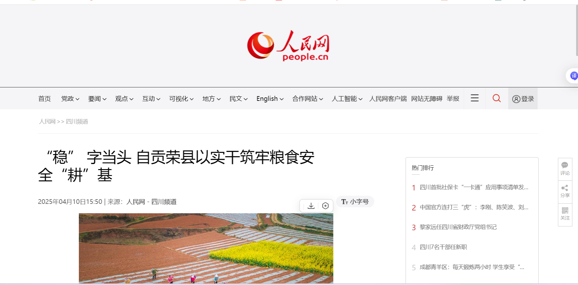 2025年,荣县将新建高标准农田2万亩以上,同步推进“宜机化”改造,让丘陵地块 “小并大、陡变缓、短接长”,为规模化种植奠定基础。