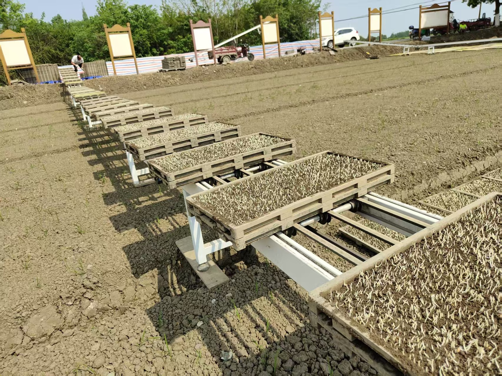 秧盘传送系统正在运转。