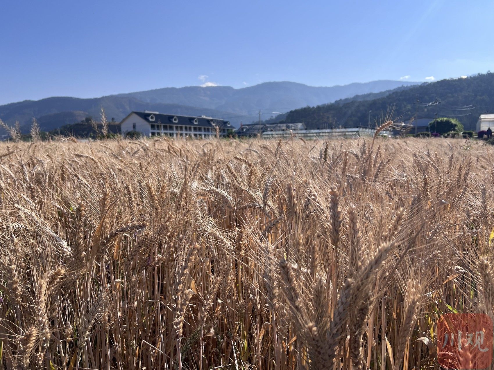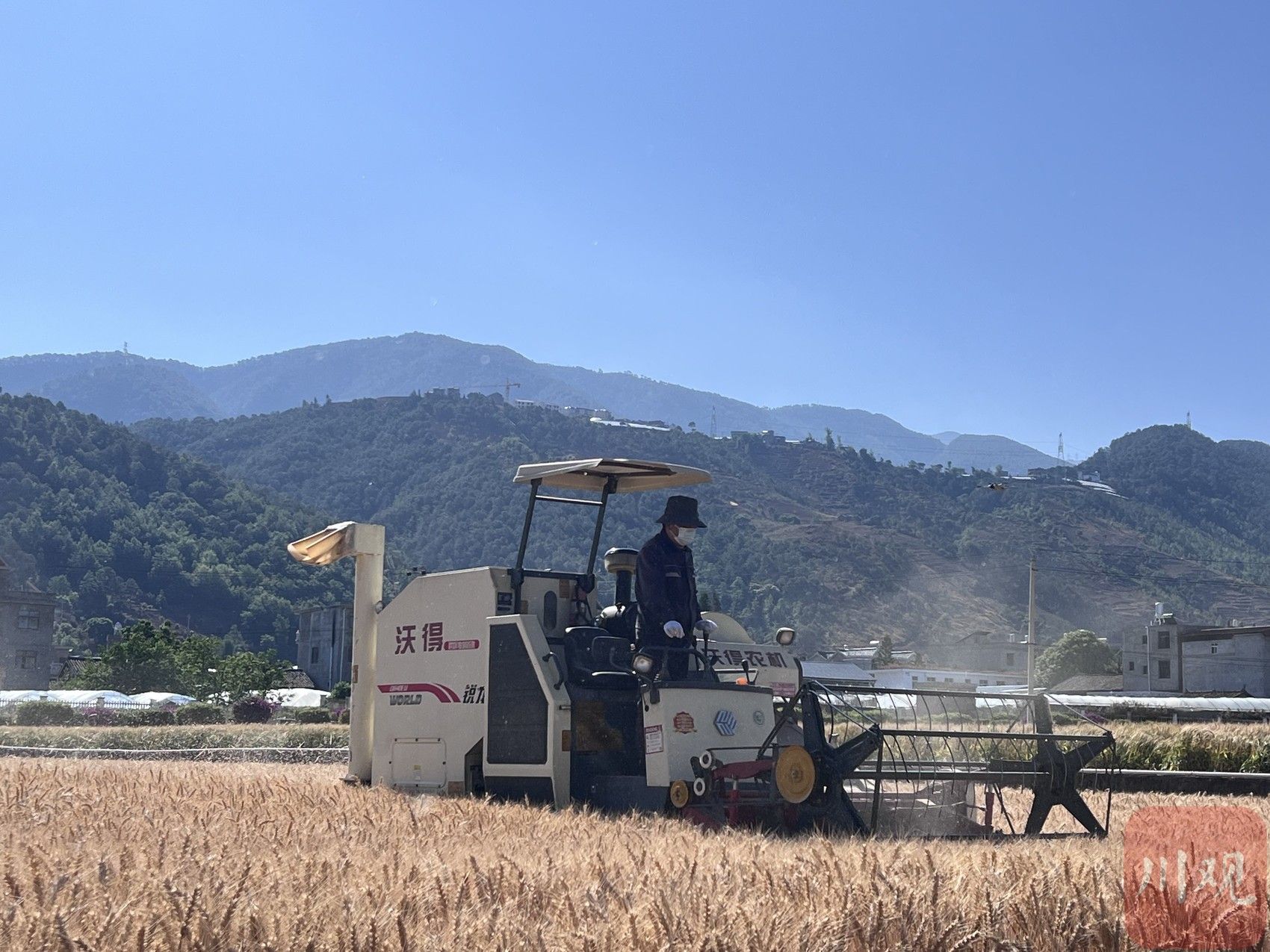 5月7日上午,凉山州西昌市迎来了一个大晴天。阳光下,西昌市大兴乡200亩连片小麦泛着金黄色的柔光。4月底以来连续多日的阴雨天气后,这片小麦终于可以收割。