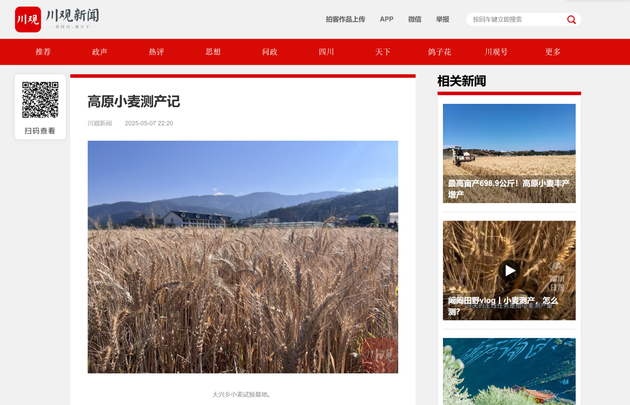 樊高琼说,接下来,团队将一边持续攻关技术难点,一边在凉山州、云贵高原地区推广,不断提高当地的小麦种植面积和产量水平。
