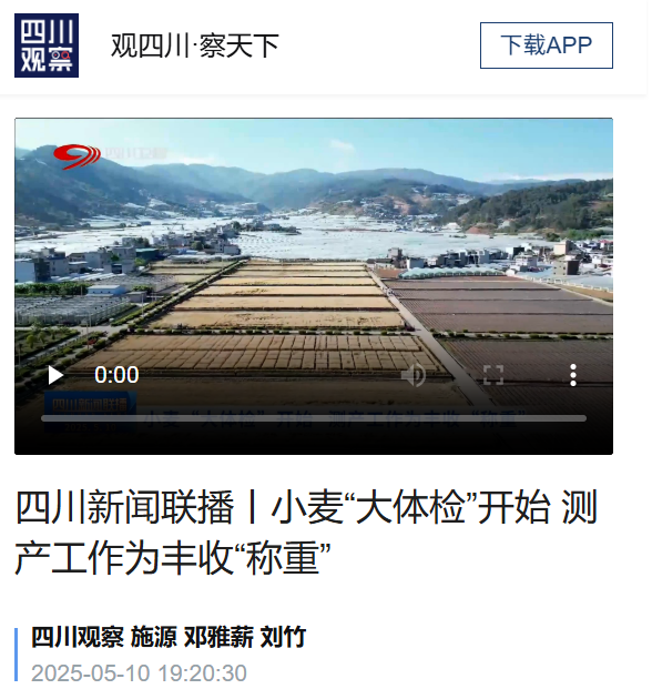 当初夏的热浪拂过巴蜀沃野,全省小麦主产区陆续迎来丰收季,测产工作也紧锣密鼓展开,田间地头正上演着一场场"科技与麦穗"的对话。