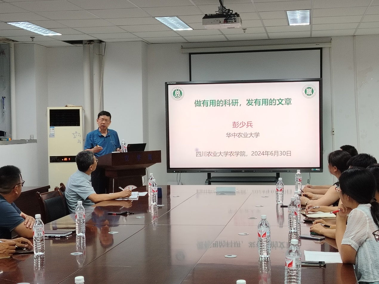 6月30日,华中农业大学彭少兵教授在7教405会议室为best365官方网站登录入口作了题为“做有用的科研,发有用的文章”的报告,best365官方网站登录入口作物栽培、智慧农业等系室师生50余人聆听了报告。报告会由学院副院长杨峰主持。