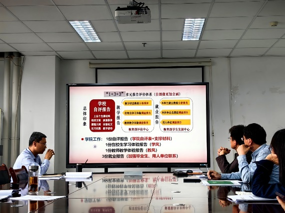 首先,学院党委书记唐城强调了本科教育教学审核评估的重要性,并提出利用审核评估摸清best365官方网站登录入口近5年的基本情况,着力精准实施促进学院发展。随后,杨峰公布了best365官方网站登录入口本科教育教学审核评估组织机构,传达了学校本科教育教学审核评估学院自评工作指导与交流会的会议精神,并和各专业负责人,系室主任一起学习了学校下发的本科教育教学审核评估工作方案和任务划分,详细解读了《本科教育教学审核评估自评表》填报,要求各专业从专业人才培养出发,在课程建设、本科教育教学综合改革、实践教学、教材建设、教师队伍、学生发展、教学成效和专业特色等方面,如何落实“三全育人”和“五育并举”的情况进行自评。认真梳理、系统总结专业在提高本科人才培养质量过程中的改革举措与成效,深入分析目前专业建设存在的问题,并明确整改方案。