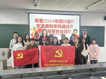 2024年10月31日下午14:00,作物栽培学与耕作学硕士研究生党支部组织支部全体党员线下集体观看了2024年四川省科学道德和学风建设宣讲教育报告会的现场直播。此次报告会旨在弘扬科学家精神,营造优良学风,加快实现高水平科技自立自强,进一步加强科研作风和学风建设,营造良好的科研生态环境和创新文化氛围。