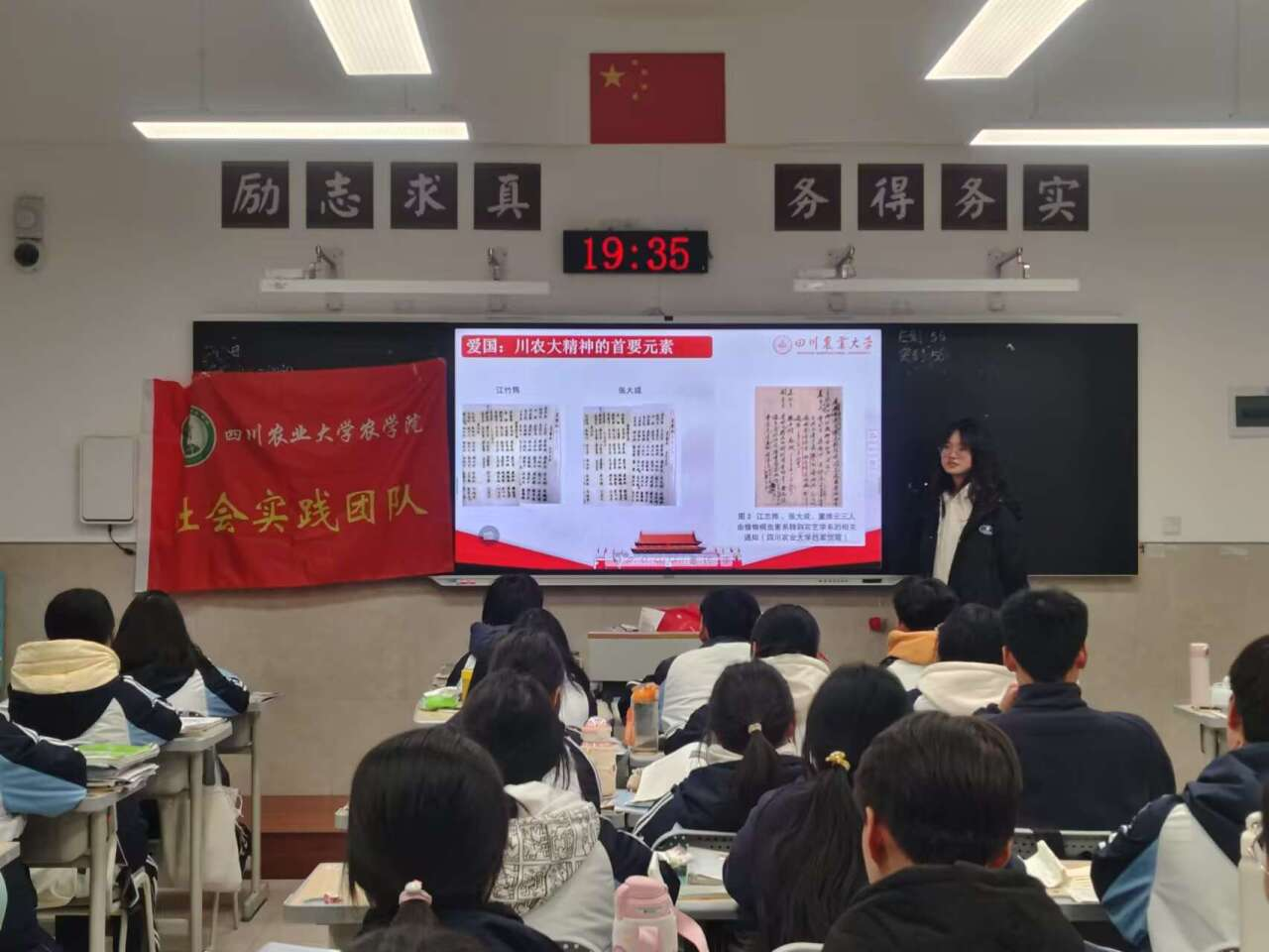 接着,实践团队三分队分别去到重庆市大足中学、四川省长宁县中学校等初高中学校开展“红色宣讲校园行”活动。成员们回到母校开展面对面宣讲,发挥作为入党积极分子的主观能动性,以川农校友江竹筠的事迹为内容,设置问答环节,向同学们讲解川农大红色历史,传递爱国和革命精神。