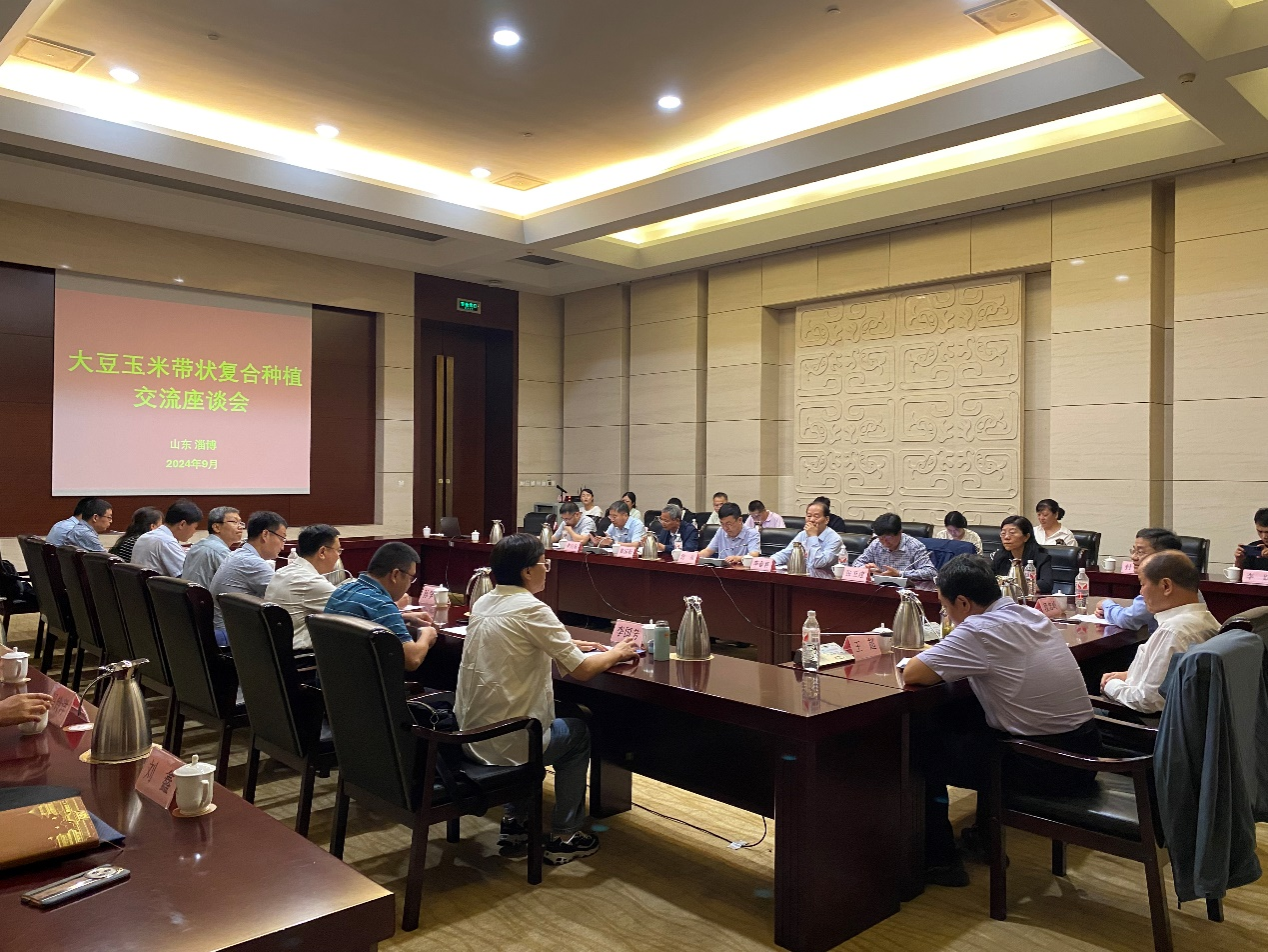 座谈会由我校杨峰教授主持,到会专家对玉米大豆带状复合种植临淄样板田给予了高度评价和充分认可。陈阜教授强调应统一思想,坚决支持国家对玉米大豆带状复合种植模式大力推广的决定,藏粮于技、藏粮于地,期望科研人员和农技人员继续完善技术,因地制宜的实现玉米大豆协同增产增效。徐振兴副站长强调玉米大豆带状复合种植要大面积推广必须依靠机械化,但机具设备不宜过多,新旧结合,协同跟进水肥一体化等配套设施,充分发挥玉米和大豆关键生育阶段水肥需求的最大化。国家重点研发计划“黄淮玉米大豆复合种植丰产增效研发与集成示范”项目首席李宗新研究员提出要持续抓好技术的攻关与技术集成,打造高产示范场景,加强与地方合作,展现项目成果。